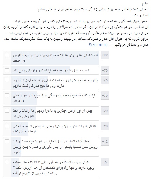 نتایج نظرسنجی و تحقیق علمی که به تازگی در صفحه انجمن پژوهشی بشقاب پرنده ها منتشر شده نشان میدهد که نه تنها آدم فضاییها وجود دارند، بلکه قطعاً از ما باهوشترند. این صفحه که تمامی مباحث آن راجع به فضا و بشقاب پرندهها علمی است، نتایج این تحقیق را بر پایه نظریه فکر جمعی منتشر کرد. طبق این نظریه، نتیجه فکر جمعی و مشورت همیشه از فکر شخصی قابل اتکاتر میباشد. نتایج این تحقیق را در ادامه میبینیم.