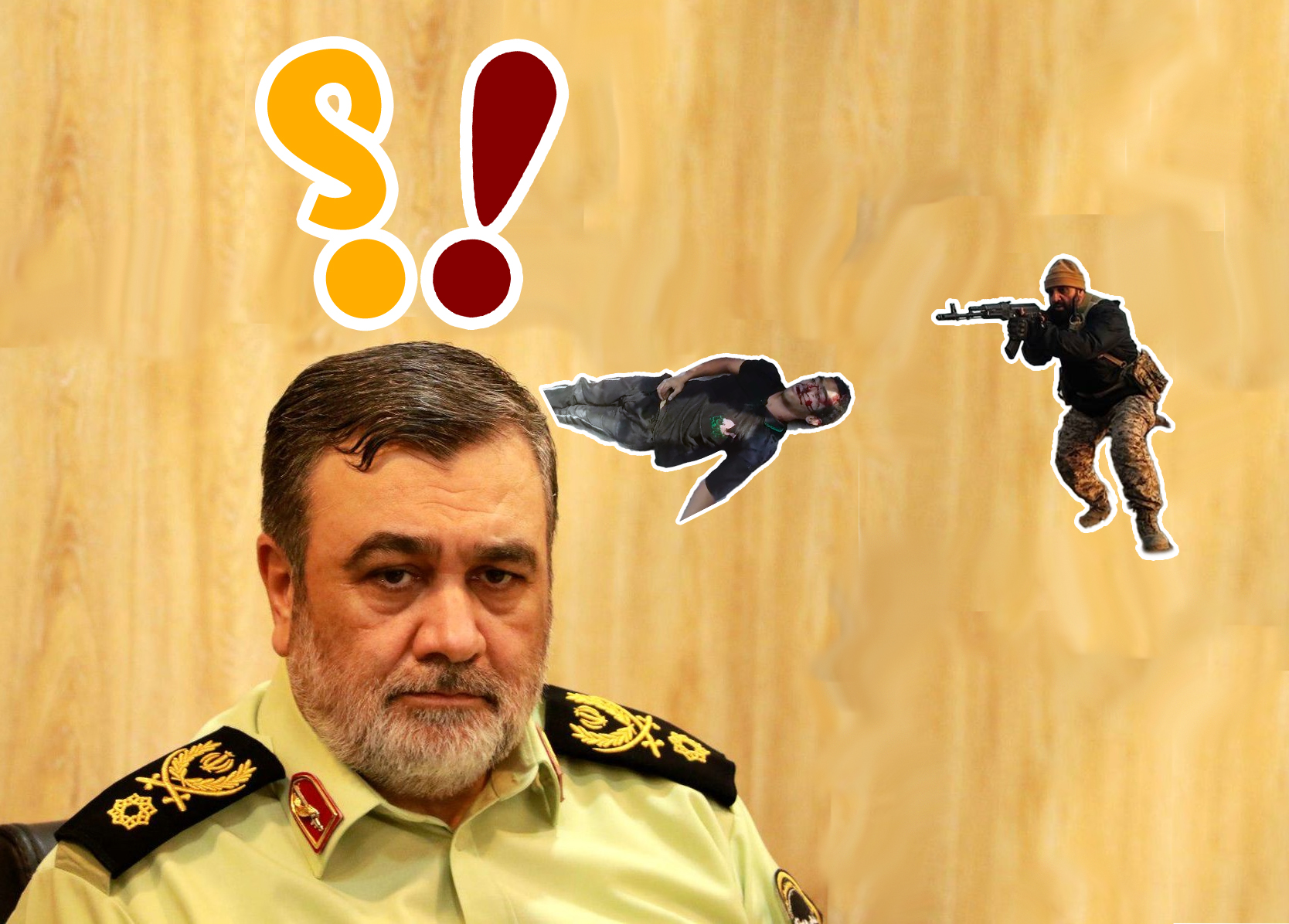 سردار دکتر اشتری به گشنیز گفت: «بچههای بسیج و ناجا اهل خشونت نیستند و میانهای با ابزار مرگ ندارند. اوج رابطه آنها با سلاح موقعی بود که در نوجوانی با دیدن فیلمهای بروس لی ادای لانچیکو در میآوردند. همین بود که وقتی یکی از بچهها گلولهای را به سر شلیک کرد و دیدیم که یکی از مردم افتاد با خودمان گفتیم شاید طرف دارد فیلم بازی میکند. همین بود که اصلا توجه نکردیم. برای همین بچهها باز تیر میزدند و بعد از اینکه مردم خیلی افتادند فهمیدیم که نه! اینها واقعا دارند میمیرند، چون هماهنگی این تعداد فیلم بازی کردن حتی در سریال سفر به چزابه هم ممکن نبود. اما برای ما این سوال پیش آمد که چه طور این آدمها که چند ده کیلوگرم وزن دارند با یک گلوله کوچک که به زحمت چند گرم ناقابل وزن دارد کشته میشوند. سردار زارعی در اتاق فکری که برای بررسی موضوع تشکیل شد گفت اینکه یک شیء چند گرمی نیروی گرانشی شدیدی داشته باشد بی سابقه نیست. وی تجربیات خود در این زمینه را نیز با ما در اشتراک گذاشت. اما دکتر نیکی ملکی که یکی از دانشمندان جوان هستهای واکسن برکت میباشد گفت ما باید با روششناسی علمی این موضوع را بررسی کنیم. برای همین با نمونهگیری تصادفی در سراسر شهرها به طور بی هدف به سر مردم شلیک کرده و نتایج را ثبت کردیم. نتیجهگیری آماری این بود که اغلب افراد بلافاصله مردند. بعد در گروه کنترل به جای سر به پا هم زدیم. اینجا بود که دیدیم عجب! اینها نمیمیرند! همین برای دانشمندان جوان سرنخی شده که به نظر میرسد شیء یا اشیائی در سر وجود دارد که برای انسان از پا حیاتیتر است. البته تحقیقات در این باره ادامه دارد و نتایج آن به همراه گزارش کارایی واکسن برکت روی میمونها منتشر خواهد شد.»