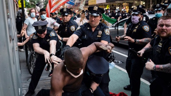 برخورد وحشیانه پلیس آمریکا با تظاهرات براندازان سر قبر جورج فلوید
